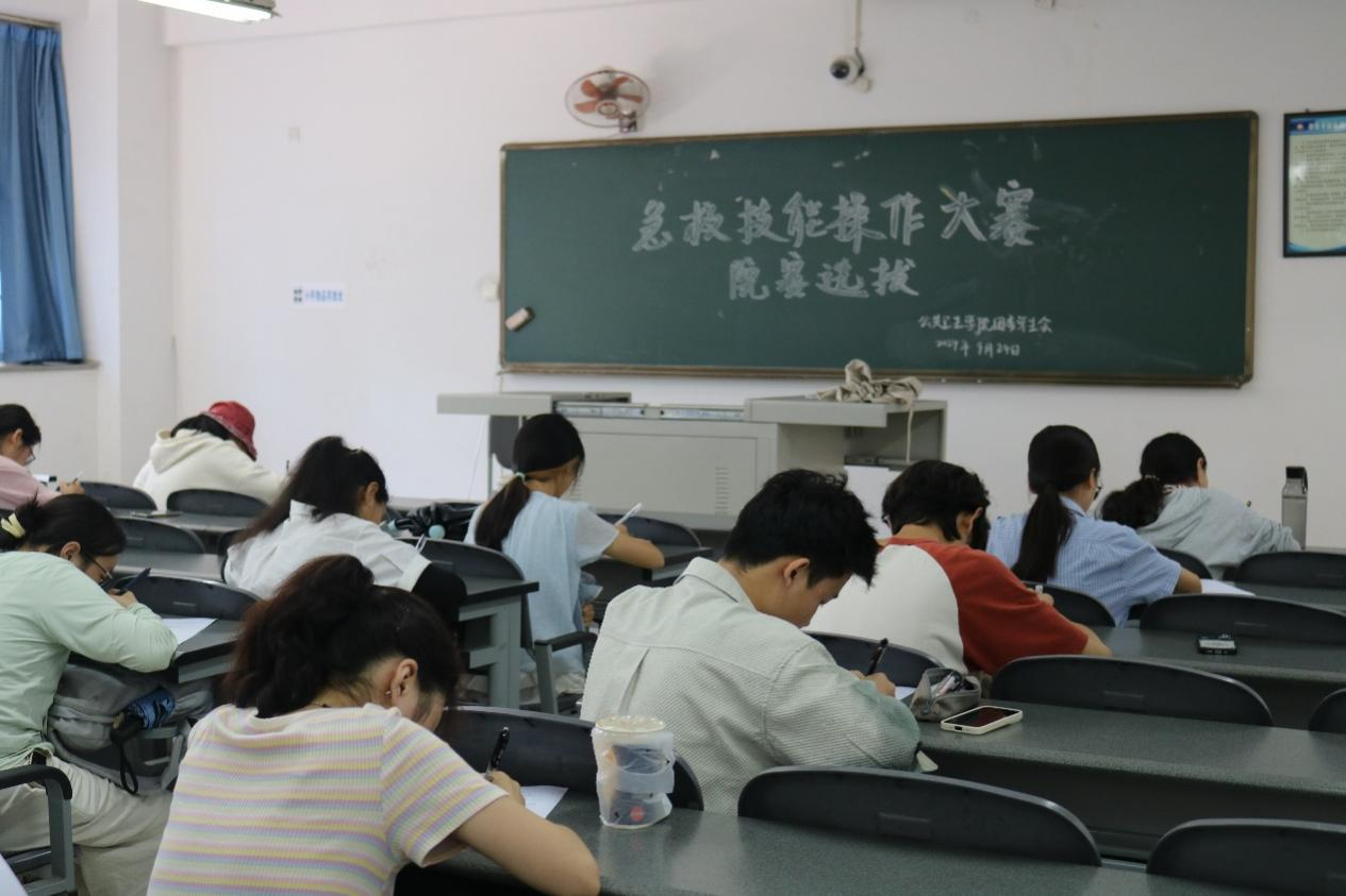 此次选拔赛采用笔试形式,笔试内容全面覆盖心肺复苏(CPR)、创伤止血、意外伤害应对、突发事件处置等核心急救知识,重点考查学生的理论储备、知识运用及综合分析能力。考场内秩序井然,同学们沉着思考,认真作答,展现了扎实的学风和良好的竞技风貌。