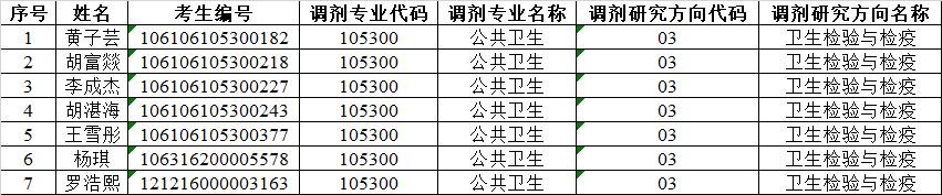根据《成都医学院2026年硕士研究生招生调剂工作办法》及《成都医学院公共卫生学院2026年公共卫生专业硕士研究生招生第二轮调剂复试工作方案》文件要求,结合考生在2026年全国硕士研究生招生“调剂服务系统”自主申报志愿情况,按调剂工作流程,现确定调剂进入复试名单,具体如下:(按考生编号排序)